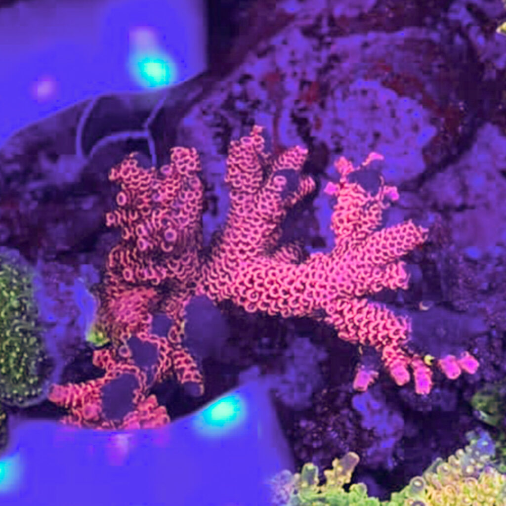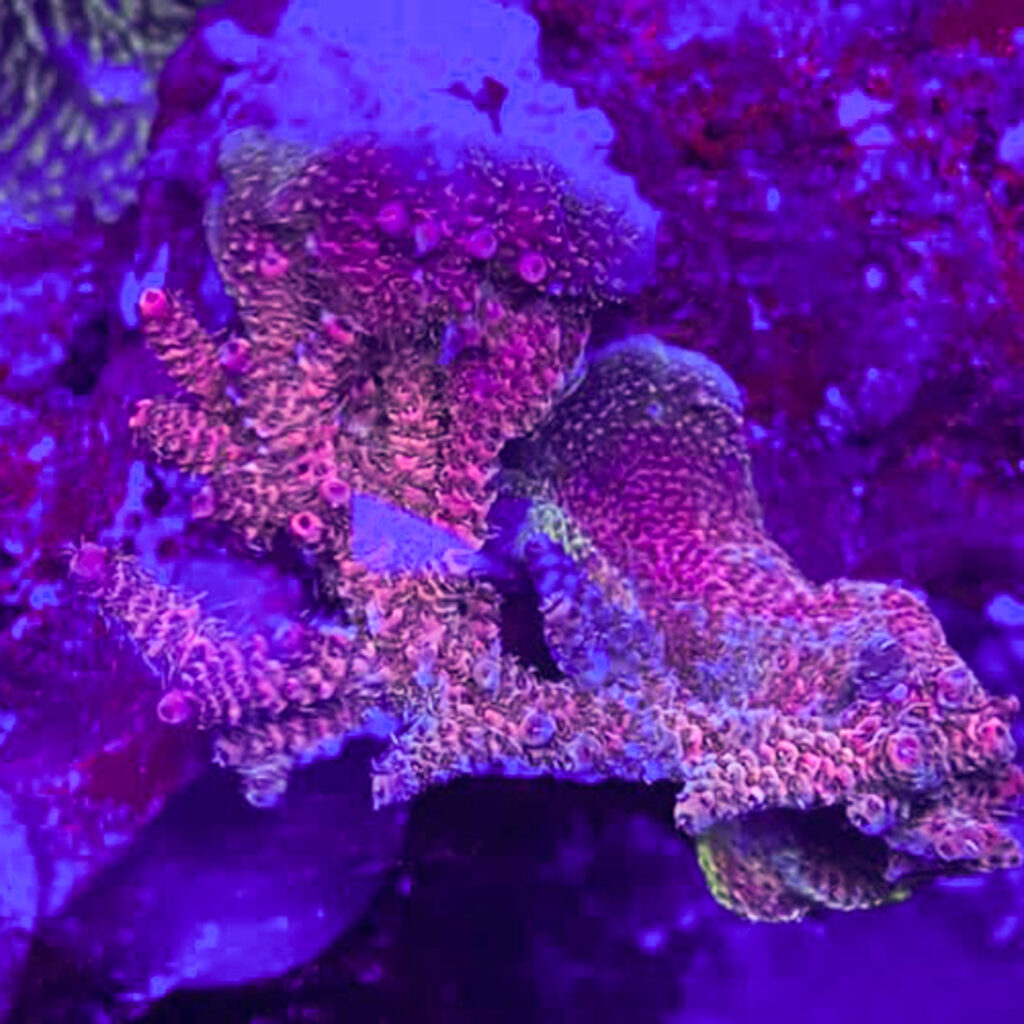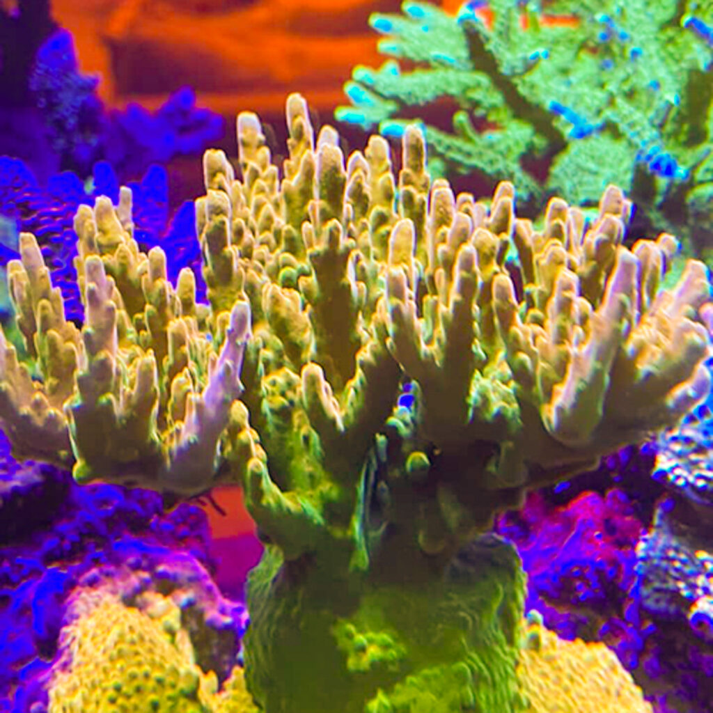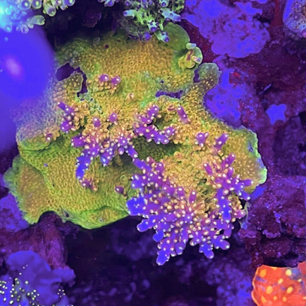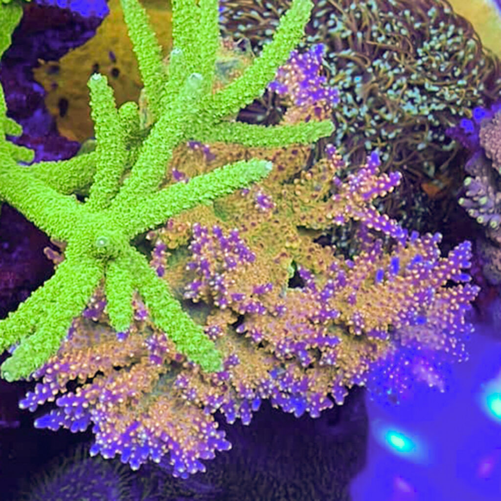 This is our collection of Acroporas, corals that thrive under careful cultivation in our tanks, developing unique colors and stunning structures. Each colony has been shaped through stable conditions and meticulous care, ensuring healthy and resilient corals. We are constantly creating new frags, giving you the opportunity to add a piece of our reef to your own aquarium!